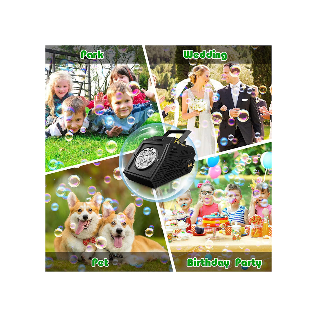 - Portable Bubble Machine: The bubble machine for kids is lightweight, comes with a portable handle, easy to carry, and comes with ambient LED lights, which can create a wonderful atmosphere at night, delighting both children and adults, making outdoor playtime more enjoyable. Enjoy bubble ocean fun with your kids. Bubble blowers also make great outdoor toys for backyard kids and pets.