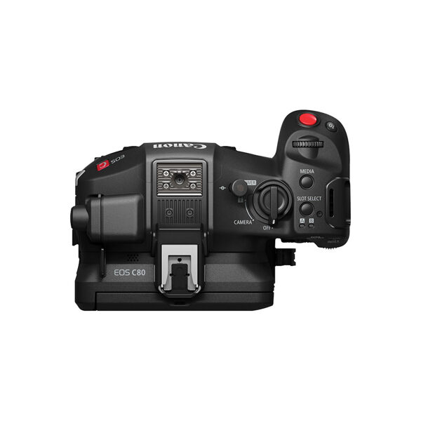 - RF stiprinājuma sistēma : Kamera EOS C80 paver iespējas izmantot RF objektīvus ar izcilu optiku un nodrošina izsmalcinātu attēlu stabilizēšanu, automātisku fokusēšanu un reāllaika metadatus VFX un XR darbplūsmām.