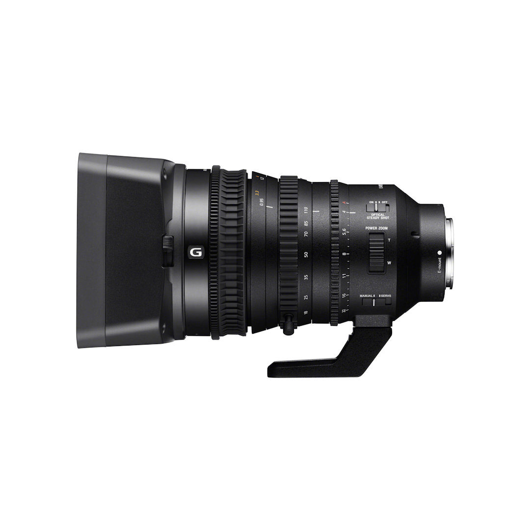 Super 35mm/APS-C power zoom for 4K movies 18 to 110 mm zoom covers the most frequently used range for Super 35mm/APS-C movies with a constant F4 maximum aperture. G Lens optical performance delivers image quality that is suitable for 4K production throughout, right out to the image periphery. Sony SMO design minimizes image shift due to lens operation, while high-level zoom control and refined focus add to professional overall performance.