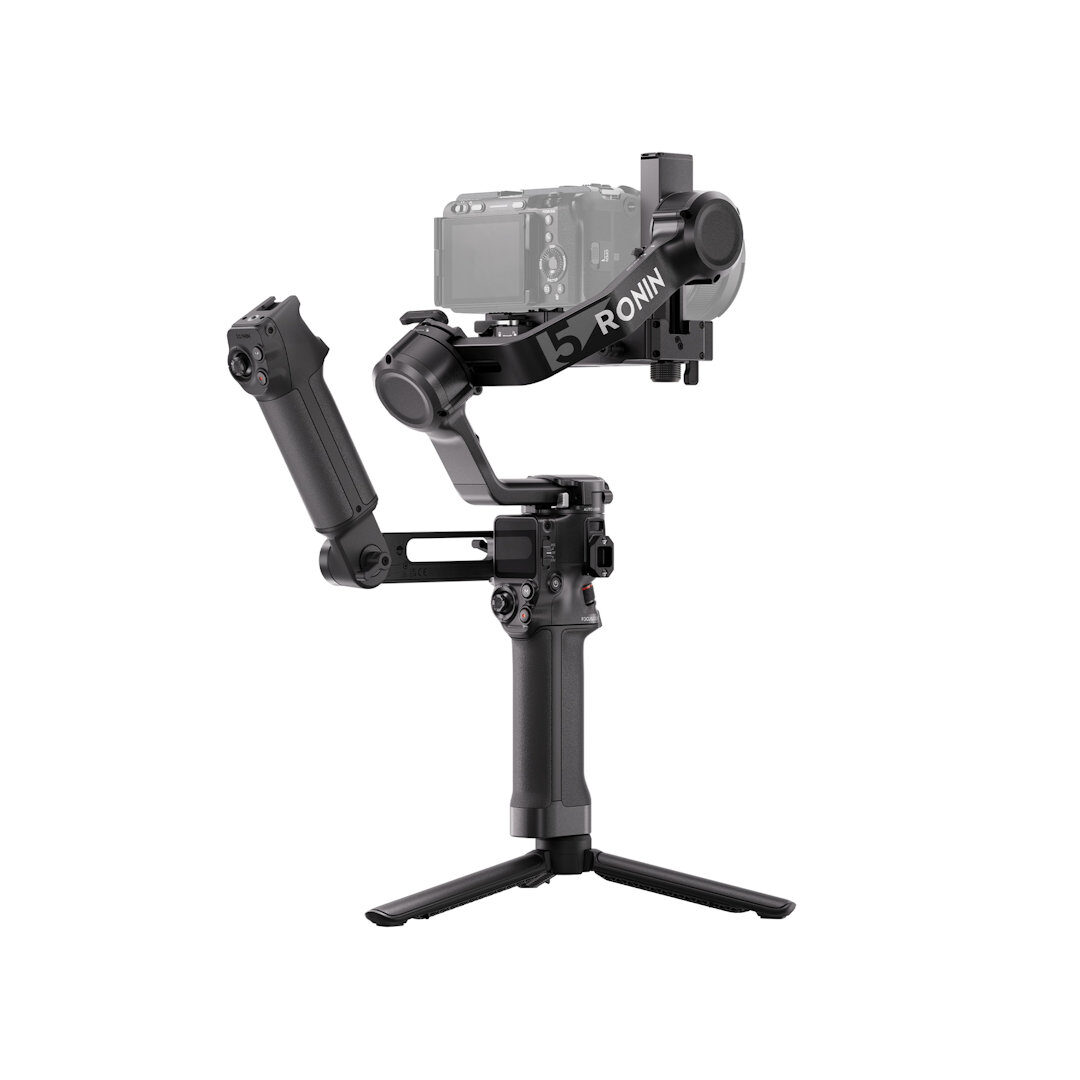 DJI RS 5 features touchscreen subject selection with the new tracking module , smooth balancing from fine-tuning knobs, and direct control via the new briefcase handle —all backed by faster charging and extended battery life