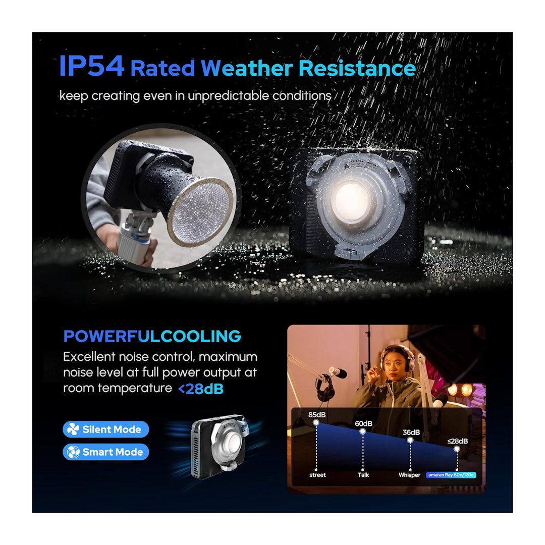 - Best-in-class brightness: Over 22% brighter than amaran 150c at nearly 85% size reduction (Up to 6,850 lux @ 1m bare)